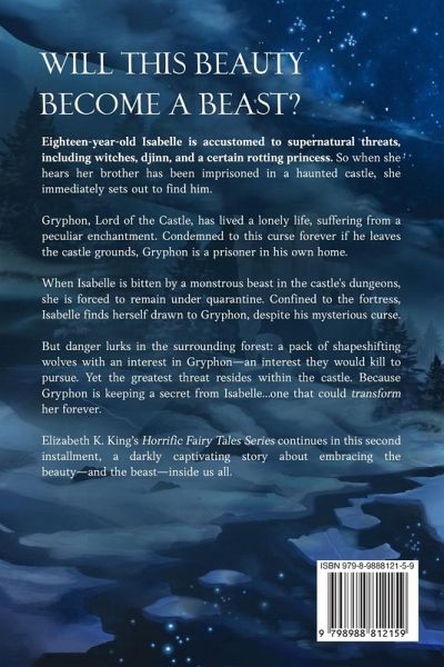 In Rotting Beauty, readers were introduced to fairytale characters from a gothic world, where princes hunt monsters, witches prey on fairies, and curses are commonplace. Now, in this eerie and enchanting sequel, the book-loving loner Isabelle returns in her own twisted tale... Will this beauty become a beast? Eighteen-year-old Isabelle is accustomed to supernatural threats, including witches, djinn, and a certain rotting princess. So when she hears her brother has been imprisoned in a haunted castle, she immediately sets out to find him. Gryphon, Lord of the Castle, has lived a lonely life, suffering from a peculiar enchantment. Condemned to this curse forever if he leaves the castle grounds, Gryphon is a prisoner in his own home. When Isabelle is bitten by a monstrous beast in the castle's dungeons, she is forced to remain under quarantine. Confined to the fortress, Isabelle finds herself drawn to Gryphon, despite his mysterious curse. But danger lurks in the surrounding forest: a pack of shapeshifting wolves with an interest in Gryphon-an interest they would kill to pursue. Yet the greatest threat resides within the castle. Because Gryphon is keeping a secret from Isabelle...one that could transform her forever. Elizabeth K. King's Horrific Fairy Tales Series continues in this second installment, a darkly captivating story about embracing the beauty...and the beast...inside us all.