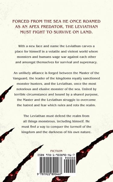 FORCED FROM THE SEA HE ONCE ROAMED AS AN APEX PREDATOR, THE LEVIATHAN MUST FIGHT TO SURVIVE ON LAND. With a new face and name the Leviathan carves a place for himself in a volatile and violent world where monsters and humans wage war against each other and amongst themselves for survival and supremacy. An unlikely alliance is forged between the Master of the Vanguard, the leader of the kingdoms royally sanctioned monster hunters, and the Leviathan, once the most notorious and elusive monster of the sea. United by terrible circumstance and bound by a shared purpose, the Master and the Leviathan struggle to overcome the hatred and fear which rules and rots the realm. The Leviathan must defend the realm from all things monstrous, including himself. He must find a way to conquer the turmoil of the kingdom and the darkness of his own nature.