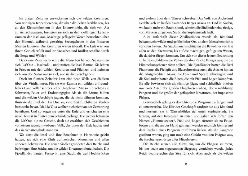 In einer Welt, in der ungezähmte Biester hinter den Stadtmauern lauern, verlassen nur die Mutigsten ihr sicheres Zuhause. Doch als Kaylas treuer Begleiter Faro - ein geflügelter Pangron - entführt wird, setzt sie alles daran, ihn zu retten. In der Wildnis trifft sie auf Alethea, eine entschlossene Heilerin, und Rustus, einen verstoßenen Krieger. Gemeinsam trotzen sie angriffslustigen Kreaturen, erfahren von einer unheilvollen Seuche und kommen einer dunklen Bedrohung auf die Spur. Können sie ihre Insel vor dem Untergang bewahren?