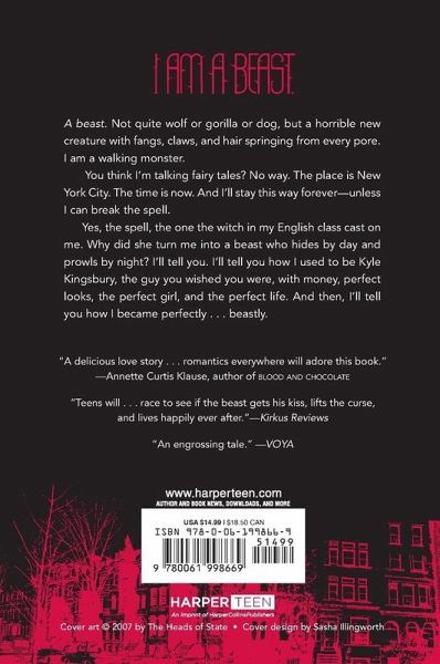 Yes, the spell, the one the witch in my English class cast on me. Why did she turn me into a beast who hides by day and prowls by night? I'll tell you. I'll tell you how I used to be Kyle Kingsbury, the guy you wished you were, with money, perfect looks, and the perfect life. And then, I'll tell you how I became perfectly . . . beastly.