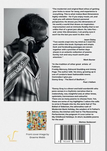 The modernist and original Beat ethos of getting your kicks is never far away, and experience is everything. This is what makes Beat Dimensions a highly relateable collection of Modernist Beat Poetry - for if you enjoy music, art and style you will admire Danny's personal perspective. He shows you the dimensions of his world, a world that draws on inspiration, improvisation and an intricate fluidity that is not unlike that of a great jazz album. So, take five - and enter this dimension, I am pretty sure it won't be last you will want to dive into. 'Dark and foreboding passages are weaved together with a promise of better days ahead, in an eclectic collection of poems. Earthy, rich and very much worth your attention.'