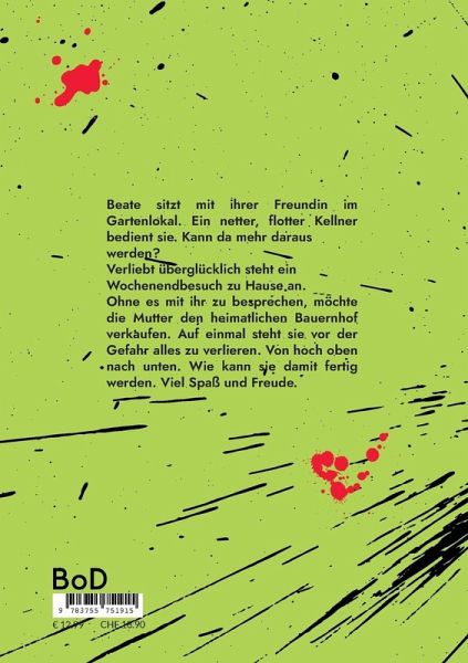 Beate sitzt mit ihrer Freundin im Gartenlokal, indem sie ein netter, flotter Kellner bedient.Leicht gehen da Strömungen umher? Kann da mehr daraus werden? Beate wohnt in der Nähe, könnte öfter nach ihm schauen?Mutter hat sie für einen Wochenendbesuch eingeladen, sie hat Neuigkeiten. Ohne es mit ihr zu besprechen, möchte die Mutter den heimatlichen Bauernhof verkaufen. Auf einmal steht Beate vor der Gefahr alles zu verlieren. Von hoch oben nach unten. Wie kann sie damit fertig werden. Viel Spaß und Freude.