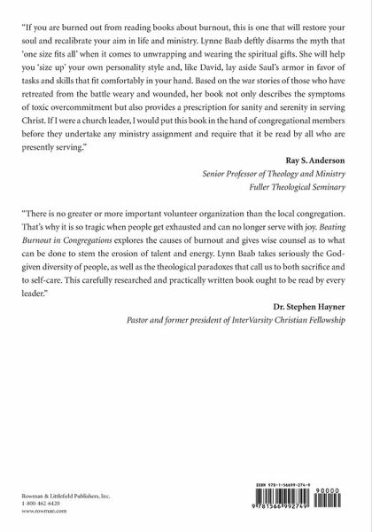 "I can only shake my head in the face of the irony that all too often the very place where we look for life and health, the very place where we expect to nurture and deepen a loving relationship with God, can cause so many to experience the exact opposite." So remarks author Lynne Baab in this timely and discerning examination of burnout in congregations. What is burnout? What causes congregation volunteers to burn out? Why is unpaid service sometimes life giving and other times just another frantic commitment? How can congregations become oases of peace and nurture while still carrying out their mission and ministry? How can we recognize holy moments in the presence of God if we are moving so fast that life passes by us in a blur? How can leaders make congregations healthy places to serve? After reflecting on these important questions and dozens of interviews with congregation volunteers, Baab suggests, "We must not fear burnout; instead, we need to do a better job coming alongside people as they experience burnout, and help them figure out what they are learning."