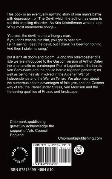 Description An eventually uplifting tale of one man's battle to overcome depression, or 'The Devil' as the author calls it. As Kris Kristofferson wrote in one of his most memorable songs:- 'You see the devil haunts a hungry man, If you wanna beat him, you have to join him. I ain't saying I beat the devil, but I drank his beer for nothing. Along this rollercoaster of a ride we are introduced to the Gascon version of Arthur Daley, the charismatic ex-paratrooper Pierre Lagaillarde and the Nigerian generals; as well as being involved in la guerre d'Algérie and the War on Terror. We also hear about the numerous health advantages of foie gras and the Gascon way of life, the Planet under Stress, Van Morrison and last but not least the life-saving qualities of both Prozac and landscape. About the Author Simon Turner was born in 1948 and lives in Sudbury, Suffolk. He is a former Chartered Surveyor who had, in his own words, 'a notably undistinguished career in property'. He was also an aubergiste and agent immobilier in France for seven years between 1989 and 1996 until he was overcome by 'The Devil'. On recovering he did 'six years penance' as a Private Hire Driver. His first book 'The Waiting Game' was a novel ostensibly based on those experiences but in hindsight he now realizes was more about total mental decomposition.
