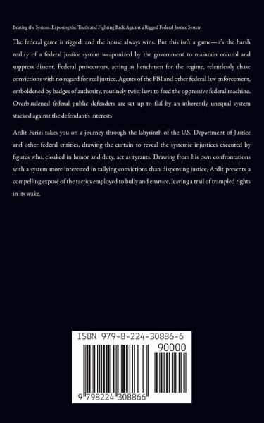 The federal game is rigged, and the house always wins. But this isn't a game-it's the harsh reality of a federal justice system weaponized by the government to maintain control and suppress dissent. Federal prosecutors, acting as henchmen for the regime, relentlessly chase convictions with no regard for real justice. Agents of the FBI and other federal law enforcement, emboldened by badges of authority, routinely twist laws to feed the oppressive federal machine. Overburdened federal public defenders are set up to fail by an inherently unequal system stacked against the defendant's interests Ardit Ferizi takes you on a journey through the labyrinth of the U.S. Department of Justice and other federal entities, drawing the curtain to reveal the systemic injustices executed by figures who, cloaked in honor and duty, act as tyrants. Drawing from his own confrontations with a system more interested in tallying convictions than dispensing justice, Ardit presents a compelling exposé of the tactics employed to bully and ensnare, leaving a trail of trampled rights in its wake. "Beating the System" is more than an exposé; it's a guide designed to arm you with the knowledge necessary to navigate and combat the oppressive strategies of federal prosecutors, agents, and officials. The book meticulously outlines each step of the federal court process, from the initial appearance to the daunting journey through trials, snitches, and the harrowing experiences within the Federal Bureau of Prisons post-sentencing. It sheds light on the sinister roles of jailhouse informants, the deceptive allure of proffer sessions, and the grim realities of plea bargains, demonstrating how these elements conspire to coerce guilty pleas and secure convictions at any cost. Through "The Federal Court Gauntlet," readers gain insight into the initial battles of bail and arraignment, the secrecy of grand juries, and the challenges of discovery and trial. "The Snitch System and Self-Sabotage" section exposes the dangerous game of cooperation and the pitfalls of snitching, which more often than not, fails to yield the promised sentence reductions. In "Surviving and Thriving Post-Sentencing," the focus shifts to life inside the Bureau of Prisons, offering strategies for navigating the system, advocating for rights, and preparing for parole. "The Broader Battle" equips you with strategies to build a robust defense, engage public opinion, and initiate legislative changes to fight the systemic corruption. Finally, "The Aftermath and Moving Forward" inspires readers to rebuild their lives post-incarceration and encourages advocacy and activism to reform the justice system. "Beating the System" is your playbook for challenging the enemies of justice entrenched in the federal government. It's a clarion call to dismantle the corrupt machinery and advocate for a justice system that serves the people, not prosecutions. The federal government has long forgotten whom it serves; this book is a reminder that it's time to fight back.
