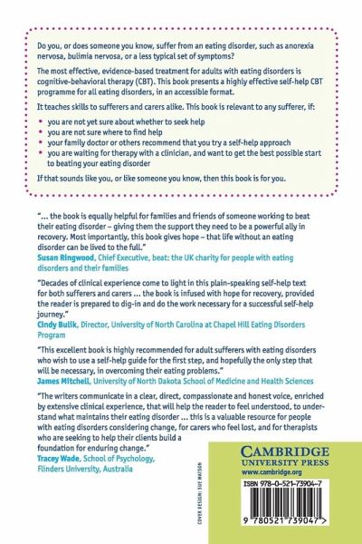 Do you or does someone you know, suffer from an eating disorder such as anorexia nervosa, bulimia nervosa or a less typical set of symptoms? The most effective, evidence-based treatment for adults with eating disorders is cognitive-behavioural therapy (CBT). This book presents a highly effective self-help CBT programme for all eating disorders, in an accessible format. It teaches skills to sufferers and carers alike. This book is relevant to any sufferer, if: - You are not yet sure about whether to seek help - You are not sure where to find help - Your family doctor or others recommend that you try a self-help approach - You are waiting for therapy with a clinician, and want to get the best possible start to beating your eating disorder