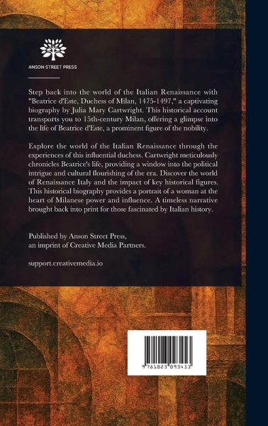 Step back into the world of the Italian Renaissance with "Beatrice d'Este, Duchess of Milan, 1475-1497," a captivating biography by Julia Mary Cartwright. This historical account transports you to 15th-century Milan, offering a glimpse into the life of Beatrice d'Este, a prominent figure of the nobility. Explore the world of the Italian Renaissance through the experiences of this influential duchess. Cartwright meticulously chronicles Beatrice's life, providing a window into the political intrigue and cultural flourishing of the era. Discover the world of Renaissance Italy and the impact of…mehr