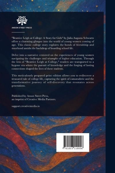 "Beatrice Leigh at College: A Story for Girls" by Julia Augusta Schwartz offers a charming glimpse into the world of young women coming of age. This classic college story explores the bonds of friendship and sisterhood amidst the backdrop of boarding school life. Delve into a narrative centered on the experiences of young women navigating the challenges and triumphs of higher education. Through the lens of "Beatrice Leigh at College," readers are transported to a bygone era where the pursuit of knowledge and the forging of lasting connections shaped the lives of these students. This meticulously prepared print edition allows you to rediscover a treasured tale of college life, capturing the spirit of camaraderie and the transformative journey of self-discovery that resonates across generations. This work has been selected by scholars as being culturally important, and is part of the knowledge base of civilization as we know it. This work is in the public domain in the United States of America, and possibly other nations. Within the United States, you may freely copy and distribute this work, as no entity (individual or corporate) has a copyright on the body of the work. Scholars believe, and we concur, that this work is important enough to be preserved, reproduced, and made generally available to the public. We appreciate your support of the preservation process, and thank you for being an important part of keeping this knowledge alive and relevant.