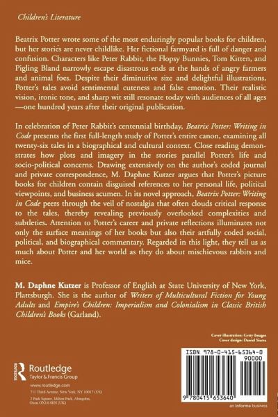 Beatrix Potter was one of the inventors of the contemporary picture book, and her small novels published at the turn of the twentieth century are still available and popular today. Writing in Code is the first book-length study of Potter's work, and it covers the entire oeuvre, examining all facets of her work in relation to her private life. Daphne Kutzer reveals the depth of the symbolism in Potter's work and relates this to the issues of the author's own development as an independent woman and writer, and her struggles with domesticity, Unitarianism, and the socio-political issues in late-19th and early-20th century England. Weaving the subtle themes inscribed in Potter's own stories with the concerns and temperament of the author who wrote them, Kutzer exemplifies literary criticism as it can illuminate the breadth of allusion in children's literature.