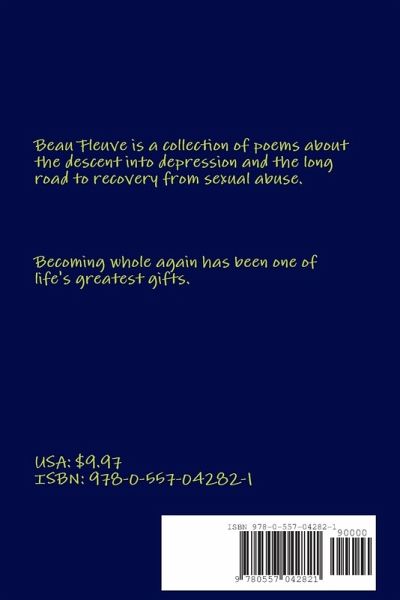 Beau Fleuve is about the journey of recovery from sexual abuse and the depression which came as a result. Using water symbolism and metaphors, the poetic collection outlines the "Tugging from the Undertow" of haunting memories, "Descending to the Depths" of depression, "Paddling Upward" toward recovery, and "Breaking Through the Surface" of healing.