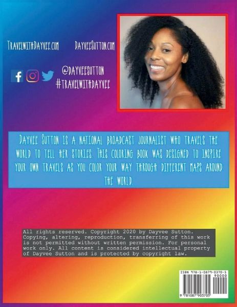 Color your way through images of different women from around the world with 75 uniquely designed illustrations perfect to color, tear and frame. At the center of each design is a special woman or girl who carries with her culture, history, hobbies, passions and features that she has embraced. Created by national travel personality, Dayvee Sutton, this coloring book is a salute to the beauty that is found in women as playful girls, lovers, mothers, professionals, playmates, sisters, daughters, teammates and more. Perfect entertainment for ages 4-104.