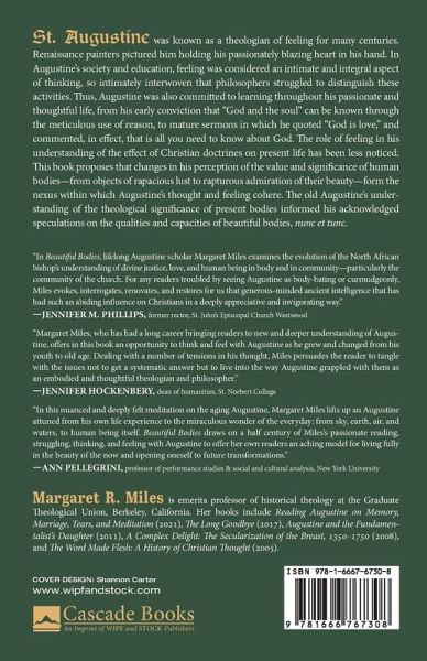 St. Augustine was known as a theologian of feeling for many centuries. Renaissance painters pictured him holding his passionately blazing heart in his hand. In Augustine's society and education, feeling was considered an intimate and integral aspect of thinking, so intimately interwoven that philosophers struggled to distinguish these activities. Thus, Augustine was also committed to learning throughout his passionate and thoughtful life, from his early conviction that ""God and the soul"" can be known through the meticulous use of reason, to mature sermons in which he quoted ""God is love,"" and commented, in effect, that is all you need to know about God. The role of feeling in his understanding of the effect of Christian doctrines on present life has been less noticed. This book proposes that changes in his perception of the value and significance of human bodies--from objects of rapacious lust to rapturous admiration of their beauty--form the nexus within which Augustine's thought and feeling cohere. The old Augustine's understanding of the theological significance of present bodies informed his acknowledged speculations on the qualities and capacities of beautiful bodies, nunc et tunc.