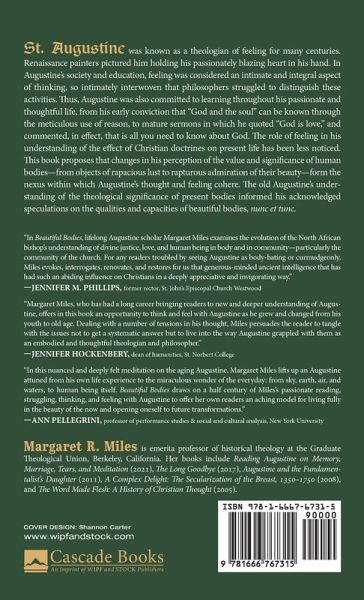 St. Augustine was known as a theologian of feeling for many centuries. Renaissance painters pictured him holding his passionately blazing heart in his hand. In Augustine's society and education, feeling was considered an intimate and integral aspect of thinking, so intimately interwoven that philosophers struggled to distinguish these activities. Thus, Augustine was also committed to learning throughout his passionate and thoughtful life, from his early conviction that ""God and the soul"" can be known through the meticulous use of reason, to mature sermons in which he quoted ""God is love,"" and commented, in effect, that is all you need to know about God. The role of feeling in his understanding of the effect of Christian doctrines on present life has been less noticed. This book proposes that changes in his perception of the value and significance of human bodies--from objects of rapacious lust to rapturous admiration of their beauty--form the nexus within which Augustine's thought and feeling cohere. The old Augustine's understanding of the theological significance of present bodies informed his acknowledged speculations on the qualities and capacities of beautiful bodies, nunc et tunc.