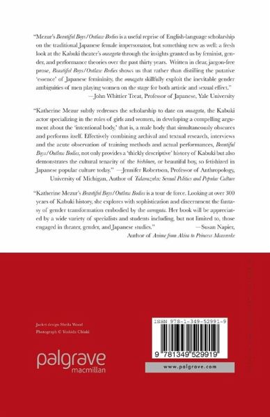 "Katherine Mezur's Beautiful Boys/Outlaw Bodies is a tour de force. Looking at over 300years of Kabuki history, she explores with sophistication and discernment the fantasy of gender transformation embodied by the onnagata. Her book will be appreciated by a wide variety of specialists and students including, but not limited to, those engaged in theater, gender, and Japanese studies."