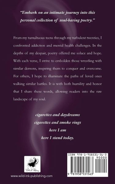 Embark on an intimate journey into this very personal collection of soul-baring poetry. From my tumultuous teens through my turbulent twenties, I confronted addiction and mental health challenges. In the depths of my despair, poetry offered me solace and hope. With each verse, I strive to embolden those wrestling with similar demons, inspiring them to conquer and overcome. For others, I hope to illuminate the paths of loved ones walking similar battles. It is with both humility and honor that I share these words, allowing readers into the raw landscape of my soul.