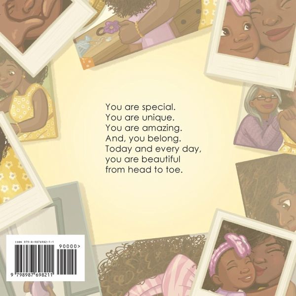 When Baby is bullied at school, Mommy knows just what to say. Despite being teased about her facial features, complexion, and hair texture, Baby is reminded that those things make her special and unique. Beautiful From Head to Toe is an ode to family, legacy, and what makes us who we are. It reminds us that we are all more than enough and what matters most is on the inside.