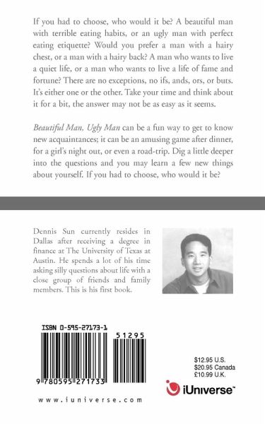 If you had to choose, who would it be? A beautiful man with terrible eating habits, or an ugly man with perfect eating etiquette? Would you prefer a man with a hairy chest, or a man with a hairy back? A man who wants to live a quiet life, or a man who wants to live a life of fame and fortune? There are no exceptions, no ifs, ands, ors, or buts. It's either one or the other. Take your time and think about it for a bit, the answer may not be as easy as it seems.