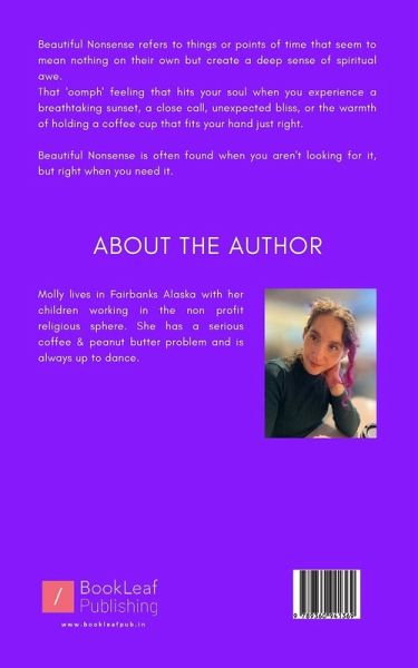 ""Beautiful Nonsense refers to things or points of time that seem to mean nothing on their own but create a deep sense of spiritual awe. That 'oomph' feeling that hits your soul when you experience a breathtaking sunset, a close call, unexpected bliss, or the warmth of holding a coffee cup that fits your hand just right. Beautiful Nonsense is often found when you aren't looking for it, but right when you need it.""
