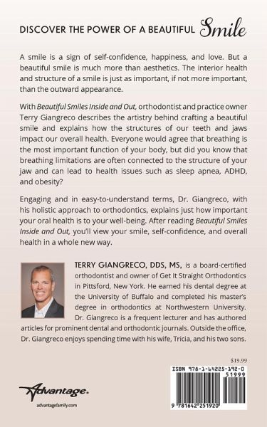 A smile is a sign of self-confidence, happiness, and love. But a beautiful smile is much more than aesthetics. With Beautiful Smiles Inside and Out, orthodontist and practice owner Terry Giangreco describes the artistry behind crafting a beautiful smile and explains how the structures of our teeth and jaws impact our overall health.