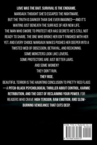 Love was the bait. Survival is the endgame. Margaux thought she'd escaped the nightmare. But the truth is darker than she ever imagined-and it's waiting just beneath the surface of her new life. The man who swore to protect her has secrets he's still not ready to share. The one who broke her isn't finished with her yet. And every choice Margaux makes pushes her deeper into a twisted web of obsession, betrayal, and reckoning. Some monsters look like lovers. Some protectors are just better liars. And some women? They don't run. They rise. Beautiful Terror is the haunting conclusion to Pretty Red Flags-a pitch-black psychological thriller about control, karmic retribution, and the cost of reclaiming your power. For readers who crave high tension, raw emotion, and slow-burning vengeance that cuts deep.