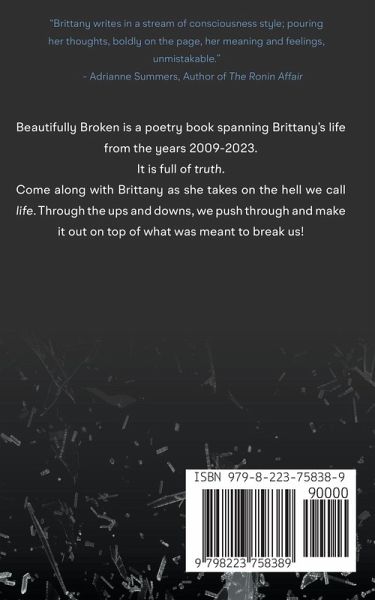 Beautifully Broken is a poetry book spanning Brittany's life from 2009 - 2023. It is full of Truth. Come along with Brittany, as she takes on the Hell we call Life. Through the Ups and Downs, we push through and make it out on top of what was meant to break us!