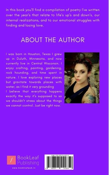 In this book you'll find a compilation of poetry I've written over the year's that relate to life's up's and down's, our internal realizations, and to our emotional struggles with finding and losing love.