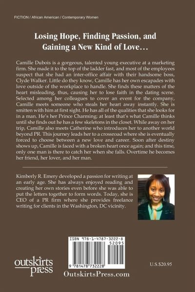 Camille Dubois is a gorgeous, talented young executive at a marketing firm. She made it to the top of the ladder fast, and most of the employees suspect that she had an inter-office affair with their handsome boss, Clyde Walker. Little do they know, Camille has her own escapades with love outside of the workplace to handle. She finds these matters of the heart misleading, thus, causing her to lose faith in the dating scene. Selected among her colleagues to cover an event for the company, Camille meets someone who steals her heart away instantly. She is smitten with him at first sight. He has all of the qualities that she looks for in a man. He's her Prince Charming; at least that's what Camille thinks until she finds out he has a few skeletons in the closet. While away on her trip, Camille also meets Catherine who introduces her to another world beyond PR. This journey leads her to a crossroad where she is eventually forced to choose between a new love and career. Soon after destiny shows up, Camille is faced with a broken heart once again; and this time, only one man is there to catch her when she falls. Overtime he becomes her friend, her lover, and her man.