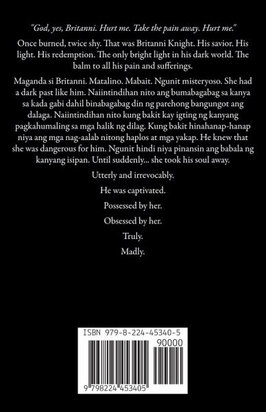 "God, yes, Britanni. Hurt me. Take the pain away. Hurt me." Once burned, twice shy. That was Britanni Knight. His savior. His light. His redemption. The only bright light in his dark world. The balm to all his pain and sufferings. Maganda si Britanni. Matalino. Mabait. Ngunit misteryoso. She had a dark past like him. Naiintindihan nito ang bumabagabag sa kanya sa kada gabi dahil binabagabag din ng parehong bangungot ang dalaga. Naiintindihan nito kung bakit kay igting ng kanyang pagkahumaling sa mga halik ng dilag. Kung bakit hinahanap-hanap niya ang mga nag-aalab nitong haplos at mga yakap. He knew that she was dangerous for him. Ngunit hindi niya pinansin ang babala ng kanyang isipan. Until suddenly... she took his soul away. Utterly and irrevocably. He was captivated. Possessed by her. Obsessed by her. Truly. Madly.