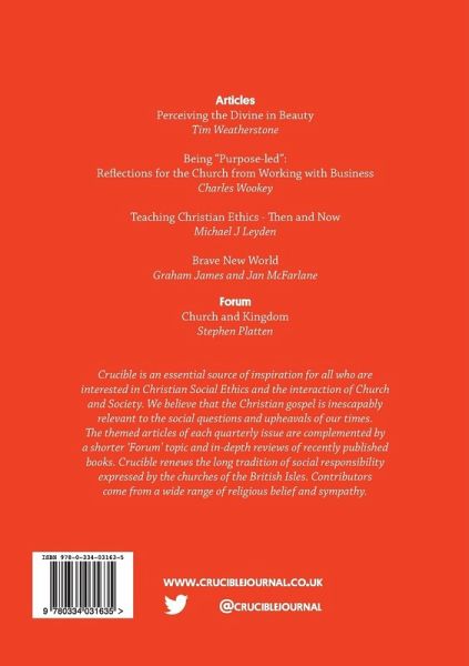 Editorial Graham James 3 Articles Perceiving the Divine in Beauty 6 - Tim Weatherstone Being "Purpose-led": Reflections for the 15 Church from Working with Business - Charles Wookey Teaching Christian Ethics - Then and Now 24 - Michael J Leyden Brave New World: Are We Amusing Ourselves to Death? 34 - Graham James and Jan McFarlane Forum Church and Kingdom 44 - Stephen Platten