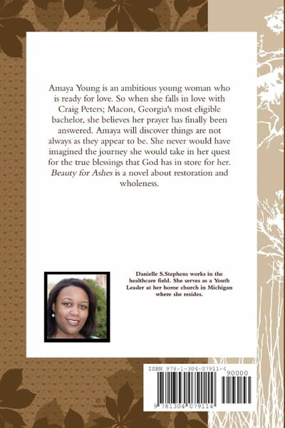 Amaya Young is an ambitious young woman who is ready for love. So when she falls in love with Craig Peters; Macon, Georgia's most eligible bachelor, she believes her prayer has finally been answered. Amaya will discover things are not always as they appear to be. She never would have imagined the journey she would take in her quest for the true blessings that God has in store for her. Beauty for Ashes is a novel about restoration and wholeness.