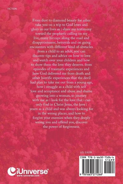 From dust to diamond beauty for ashes take you on a trip to God loves and glory in our lives as i share my testimony toward the prophetic calling on my live, many hiccups along the road and disappointment, betrayals and on going encounters with different kind of obstacles from a child to an adult, you can discover tips and advice on how to love and watch over your children and how to show them the love they deserve. from episodes of traumatic experiences and how God delivered me from death and other horrific experiences that the devil had plan to take me out from a young age, how i struggle as a child with self love and acceptance and abuse and shame growing into a woman, so journey with me as i look for the love that i can only find in Christ Jesus, the love i yearn as a child and was always looking for in the wrong places, and how to forgive your enemies when they deeply wrong you and offend you, discover the power of forgiveness.