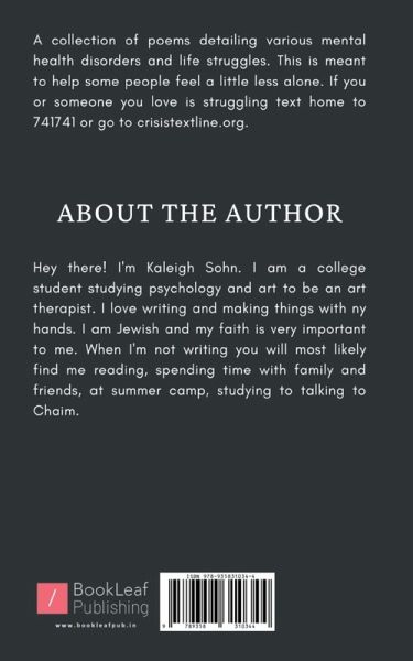 A collection of poems detailing various mental health disorders and life struggles. This is meant to help some people feel a little less alone. If you or someone you love is struggling text home to 741741 or go to crisistextline.org.