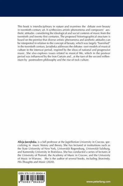 This book is interdisciplinary in nature and examines the debate over beauty in twentieth-century art. It synthesizes artistic phenomena and composers' aesthetic attitudes considering the ideological and social contexts of music from the twentieth and twenty-first centuries. The proposed historiographical structure is based on the premise that diverse artistic phenomena and aesthetic attitudes can be interpreted in relation to the concept of beauty, which was largely "banished" in the twentieth century. Jarzebska addresses the debates over models of musical culture in the interwar period, inspired by the ideas of national and progressive music. She also explores issues related to musical life, which in the postwar period was influenced by the Iron Curtain and , at the turn of the second millennium by postmodern philosophy and the rise of rock culture.