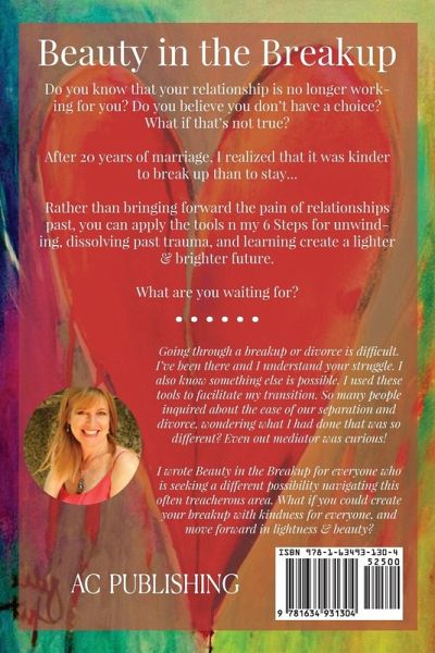 Do you know that your relationship is no longer working for you? Do you believe you don't have choice? What if that's not true? After 20 years of marriage, I realized it was kinder to break up than to stay… Rather than bringing forward the pain of relationships past, you can apply the tools in my 6 Steps for unwinding, dissolving past trauma, and learning to create a lighter & brighter future. What are you waiting for?