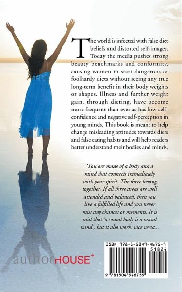 The world is infected with false diet beliefs and distorted self-images. Today the media pushes strong beauty benchmarks and conformity, causing women to start dangerous or foolhardy diets without seeing any true long-term benefit in their body weights or shapes. Illness and further weight gain, through dieting, have become more frequent than ever as has low self-confidence and negative self-perception in young minds. This book is meant to help change misleading attitudes towards diets and false eating habits and will help readers better understand their bodies and minds.