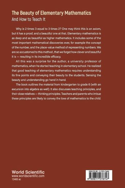Why is 2 times 3 equal to 3 times 2? One may think this is an axiom, but it has a proof, and a beautiful one at that. Elementary mathematics is as deep and as beautiful as higher mathematics. It includes some of the most important mathematical discoveries ever, for example the concept of the number, and the place-value method of representing numbers. We are so accustomed to this method , that we forget how clever and beautiful it is - resulting in its incredible efficacy. All this was a surprise for the author, a university professor of mathematics, when he went to teach in elementary school. He realized that good teaching of elementary mathematics requires understanding its fine points and conveying their beauty to the students. Sensing the beauty and understanding go hand in hand. The book outlines the material from kindergarten to grade 6 (with an excursion into algebra as well). It also discusses teaching principles, and their close relatives - thinking principles. Teachers and parents who imbue these principles are likely to convey the love of mathematics to the child.