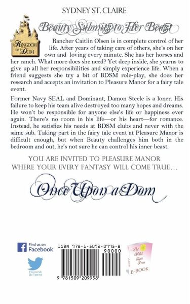 Rancher Caitlin Olsen is in complete control of her life. After years of taking care of others, she's on her own and loving every minute. She has her horses and her ranch. What more does she need? Yet deep inside, she yearns to give up all her responsibilities and simply experience life. When a friend suggests she try a bit of BDSM role-play, she does her research and accepts an invitation to Pleasure Manor for a fairy tale event. Former Navy SEAL and Dominant, Damon Steele is a loner. His failure to keep his team alive destroyed too many hopes and dreams. He won't be responsible for anyone else's life or happiness ever again. There's no room in his life-or his heart-for romance. Instead, he satisfies his needs at BDSM clubs and never with the same sub. Taking part in the fairy tale event at Pleasure Manor is difficult enough, but when Beauty challenges him both in the bedroom and out, he's not sure he can control his inner beast.