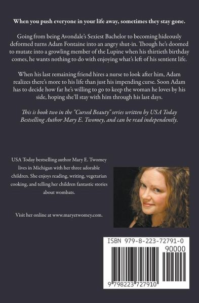When you push everyone in your life away, sometimes they stay gone. Going from being Avondale's Sexiest Bachelor to becoming hideously deformed turns Adam Fontaine into an angry shut-in. Though he's doomed to mutate into a growling member of the Lupine when his thirtieth birthday comes, he wants nothing to do with enjoying what's left of his sentient life. When his last remaining friend hires a nurse to look after him, Adam realizes there's more to his life than just his impending curse. Soon Adam has to decide how far he's willing to go to keep the woman he loves by his side, hoping she'll stay with him through his last days. This is book two in the "Cursed Beauty" series written by USA Today Bestselling Author Mary E. Twomey, and can be read independently.