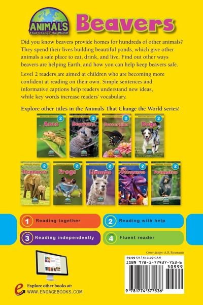 Did you know beavers provide homes for hundreds of other animals? They spend their lives building beautiful ponds, which give other animals a safe place to eat, drink, and live. Find out other ways beavers are helping Earth, and how you can help keep beavers safe. Level 2 readers are aimed at children who are becoming more confident at reading on their own. Simple sentences and informative captions help readers understand new ideas, while key words increase readers' vocabulary.