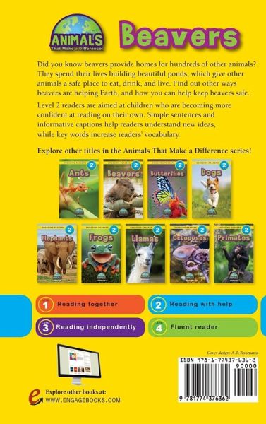 Did you know beavers provide homes for hundreds of other animals? They spend their lives building beautiful ponds, which give other animals a safe place to eat, drink, and live. Find out other ways beavers are helping Earth, and how you can help keep beavers safe. Level 2 readers are aimed at children who are becoming more confident at reading on their own. Simple sentences and informative captions help readers understand new ideas, while key words increase readers' vocabulary.