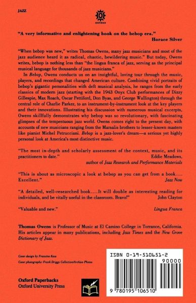 Created in the jazz clubs of New York City, and initially treated by most musicians and audiences as radical, chaotic, and bewildering: bebop has become, Thomas Owen writes, 'the lingua franca of jazz, serving as the principal musical language of thousands of jazz musicians.' In Bebop, Owens conducts us on an insightful, loving tour through the music, players, and recordings that changed American culture. Combining vivid portraits of bebop's gigantic personalities - among them Charlie Parker, Dizzy Gillespie, and Miles Davis - with deft musical analysis, he offers an instrument-by-instrument look at the key players and their innovations.