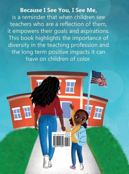 Because I See You, I See Me, is a reminder that when children see teachers who are a reflection of them, it empowers their goals and aspirations. This book highlights the importance of diversity in the teaching profession and the long term positive impacts it can have on children of color.