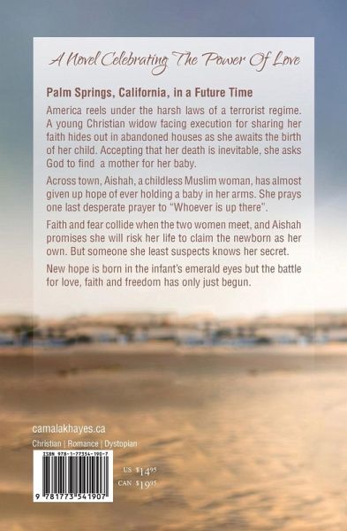 Palm Springs, California, in a Future Time America reels under the harsh laws of a terrorist regime. A young Christian widow facing execution for sharing her faith hides out in abandoned houses as she awaits the birth of her child. Accepting that her death is inevitable, she asks God to find a mother for her baby. Across town, Aishah, a childless Muslim woman, has almost given up hope of ever holding a baby in her arms. She prays one last desperate prayer to "Whoever is up there". Faith and fear collide when the two women meet, and Aishah promises she will risk her life to claim the newborn as her own. But someone she least suspects knows her secret. New hope is born in the infant's emerald eyes but the battle for love, faith and freedom has only just begun.