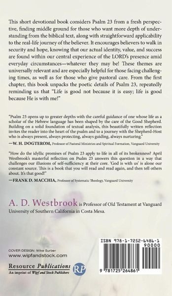 This short devotional book considers Psalm 23 from a fresh perspective, finding middle ground for those who want more depth of understanding from the biblical text, along with straightforward applicability to the real-life journey of the believer. It encourages believers to walk in security and hope, knowing that our actual identity, value, and success are found within our central experience of the LORD's presence amid everyday circumstances--whatever they may be! These themes are universally relevant and are especially helpful for those facing challenging times, as well as for those who give pastoral care. From the first chapter, this book unpacks the poetic details of Psalm 23, repeatedly reminding us that ""life is good not because it is easy; life is good because He is with me!""