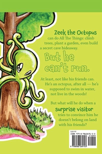 Zeek the Octopus can do All The Things: climb trees, plant a garden, even build a secret cave hideaway. But he can't run. At least, not like his friends can. He's an octopus, after all - he's supposed to swim in water, not live in the woods! But what will he do when a surprise visitor tries to convince him he doesn't belong on land with his friends?
