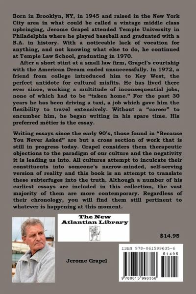 Jermone Grapel began writing essays in the early 90's, this collection being a fractional but representative cross section of an output that is still in progress today. Writing as "Post Consumer Man," he restricts his essays to anything that may be relevant since the dawn of time to the end of eternity. They serve as a therapeutical voice to his objections to the paradigm of our culture and the negativity it is leading us into. Grapel notes that all cultures attempt to inculcate their constituents into someone's narrow minded, self-serving version of reality and this book is his attempt to translate these subterfuges into the truth.