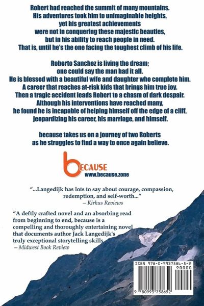 Robert had reached the summit of many mountains. His adventures took him to unimaginable heights, yet his greatest achievements were not in conquering these majestic beauties, but in his ability to reach people in need. That is, until he's the one facing the toughest climb of his life. Roberto Sanchez is living the dream; one could say the man had it all. He is blessed with a beautiful wife and daughter who complete him. A career that reaches at-risk kids that brings him true joy. Then a tragic accident leads Robert to a chasm of dark despair. Although his interventions have reached many, he found he is incapable of helping himself off the edge of a cliff, jeopardizing his career, his marriage, and himself. because takes us on a journey of two Roberts as he struggles to find a way to once again believe.