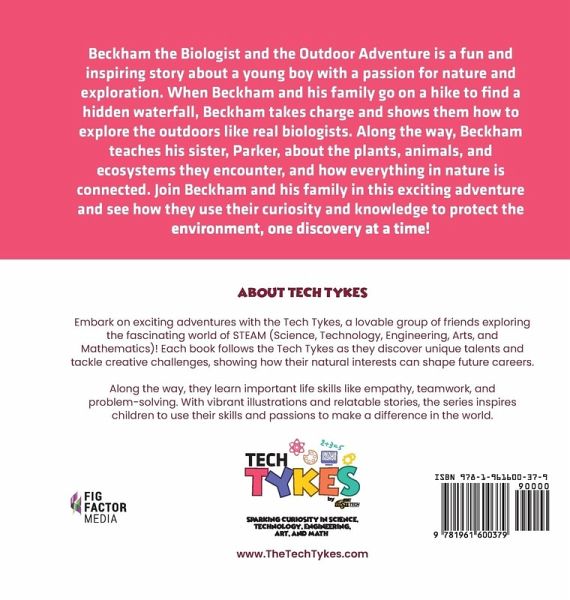 Beckham the Biologist and the Outdoor Adventure is a fun and inspiring story about a young boy with a passion for nature and exploration. When Beckham and his family go on a hike to find a hidden waterfall, Beckham takes charge and shows them how to explore the outdoors like real biologists. Along the way, Beckham teaches his sister, Parker, about the plants, animals, and ecosystems they encounter, and how everything in nature is connected. Join Beckham and his family in this exciting adventure and see how they use their curiosity and knowledge to protect the environment, one discovery at a time! ABOUT TECH TYKES: Embark on exciting adventures with the Tech Tykes, a lovable group of friends exploring the fascinating world of STEAM (Science, Technology, Engineering, Arts, and Mathematics)! Each book follows the TechTykes as they discover unique talents and tackle creative challenges, showing how their natural interests can shape future careers. Along the way, they learn important life skills like empathy, teamwork, and problem-solving. With vibrant illustrations and relatable stories, the series inspires children to use their skills and passions to make a difference in the world