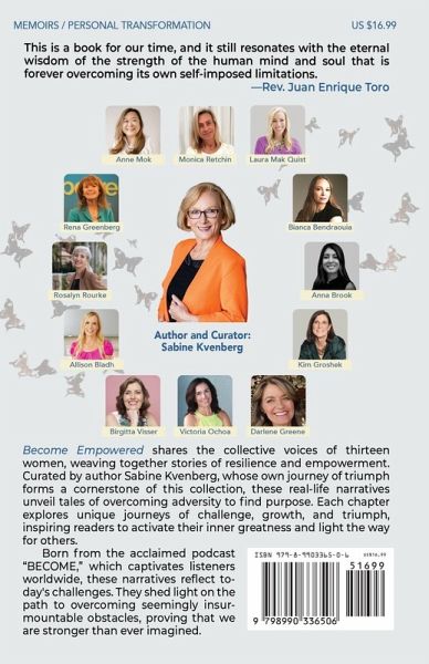 ARE YOU READY TO UNLOCK YOUR INNER STRENGTH? Discover the incredible power of resilience, love, and transformation in this compelling anthology. Become Empowered is a collection of true stories from women who have found success and happiness by living a life that truly matters. These narratives offer a beacon of hope and inspiration, showcasing the journey of resilience and adversity each woman faced to step into her true purpose. Originating from the acclaimed podcast "BECOME," which captivates listeners worldwide, this book presents a series of personal growth stories that resonate with smart women everywhere. It shines a light on overcoming life's storms, proving that with courage and determination, we can surpass our limits and live the life we deserve. Curated by Sabine Kvenberg, whose triumphant journey anchors this collection, Become Empowered features the experiences of twelve remarkable women who share their unique paths to growth and victory: Anne Mok Monica Retchin Laura Mak Quist Bianca Bendraouia Anna Brook Kim Groshek Darlene Greene Victoria Ochoa Birgitta Visser Allison Bladh Rosalyn Rourke Rena Greenberg This anthology goes beyond mere storytelling; it's an invitation to engage with the transformative power of shared experiences. It's designed for anyone seeking motivation for personal growth, finding the courage to change, and embracing a journey of empowerment. Each chapter serves as a testament to the strength of women who have faced down adversity with resilience and love. Join a movement that celebrates not just surviving, but thriving. Become Empowered is a must-read for those on a path to a fulfilled and purposeful life. UNLEASH YOUR POTENTIAL AND BECOME EMPOWERED.
