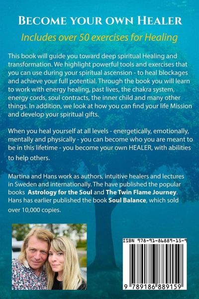 ¿¿A comprehensive Ascension Guide - Contains more then 50 Healing exercises¿¿ This book guides you toward deep spiritual healing, expansion and transformation. We highlight powerful tools and exercises that you can use during your spiritual ascension - to heal blockages and achieve your full potential. When you heal yourself at all levels - energetically, emotionally, mentally and physically - you can become who you are meant to be in this lifetime. You become your own powerful Healer with strong abilities to help others. Through the book you will learn about:The construction of your complex Energy system The flow of life Energy through the body, organs and chakras. How to transform deep fears into higher frequencies How to work with intuition, a pendulum and higher spiritual guides to heal yourself How blockages arise in your Energy system How to work with blockages from childhood and past lives + access subconscious patterns How to heal emotional patterns and create new ways of living How to understand, heal and strengthen your 7 main chakras How to work with your earth star chakra and your galactic chakras Your origin as a Starseed and connection with different soul groups How to clear and free yourself from negative energy cords, soul contracts and agreements that limit you How to find your Soul mission and contribute to Earth How to open your heart and give yourself love and compassion Martina and Hans work as authors, intuitive healers and lectures in Sweden and internationally. They have also published the books Healing Workbook, Astrology for the Soul, The Ascendent and The Twin flame Journey. Hans has earlier published the book Soul Balance, which sold over 10,000 copies.